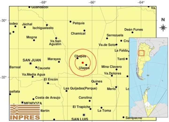 El movimiento ocurrió a las 5:42 hora local y tuvo su epicentro a 17 kilómetros al noroeste de Ulapes y 25 kilómetros al sureste de Chepes, con una profundidad de 146 kilómetros.